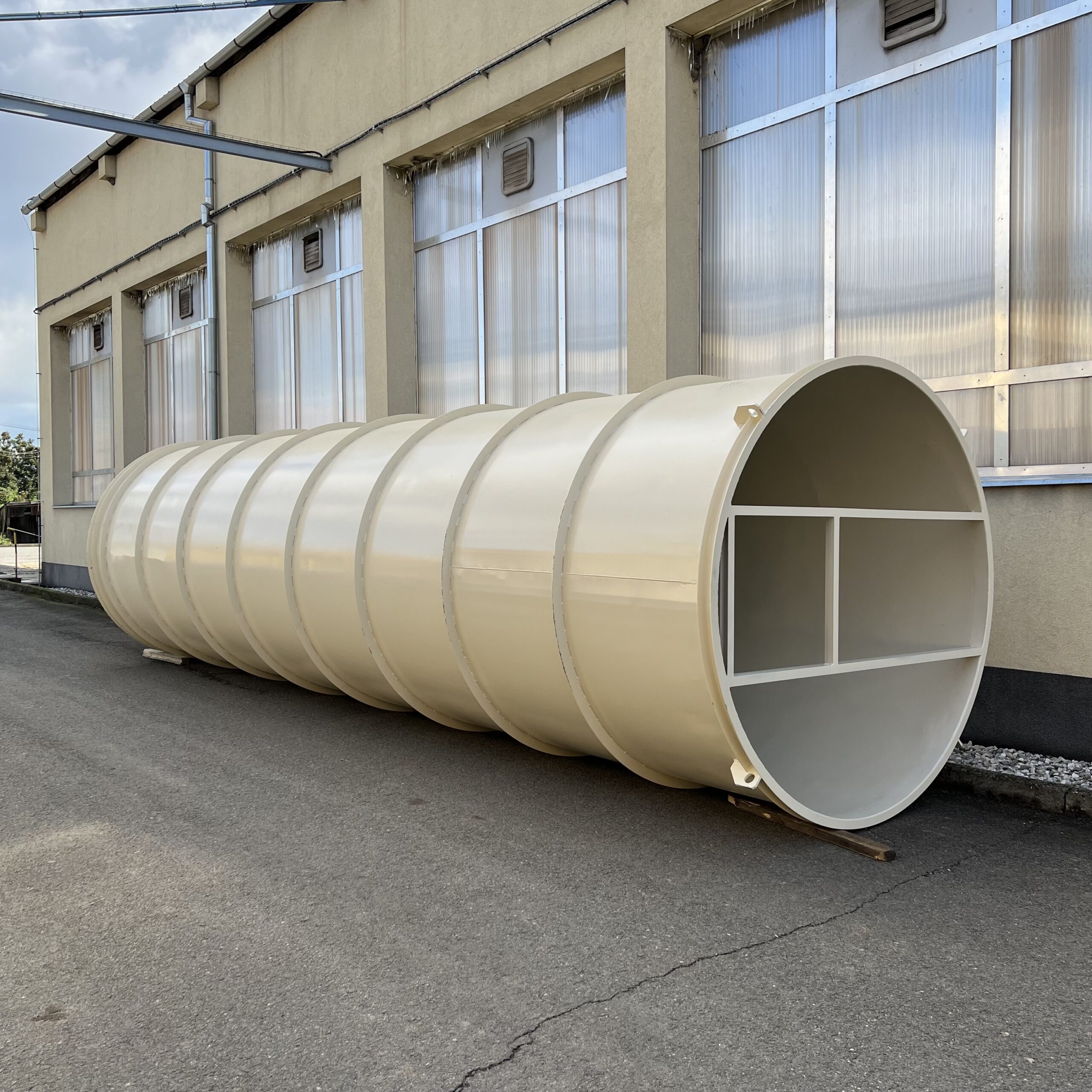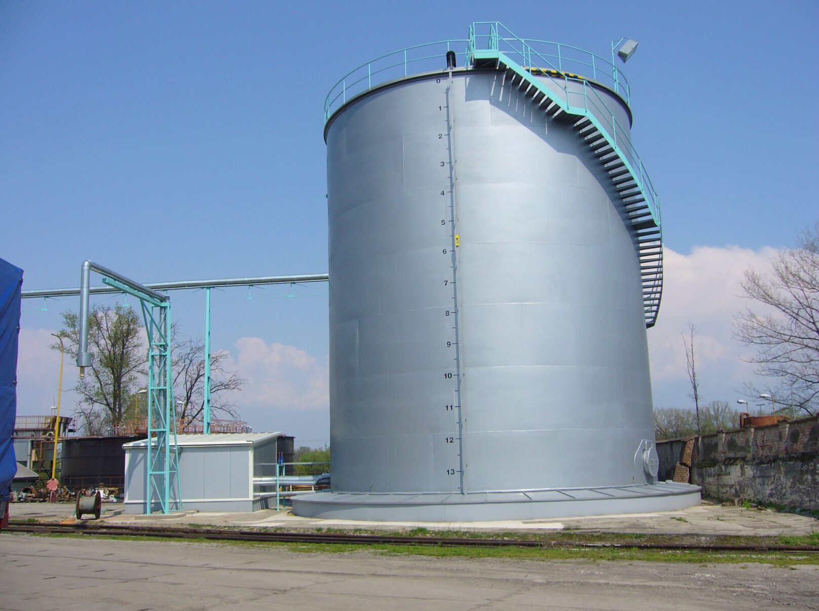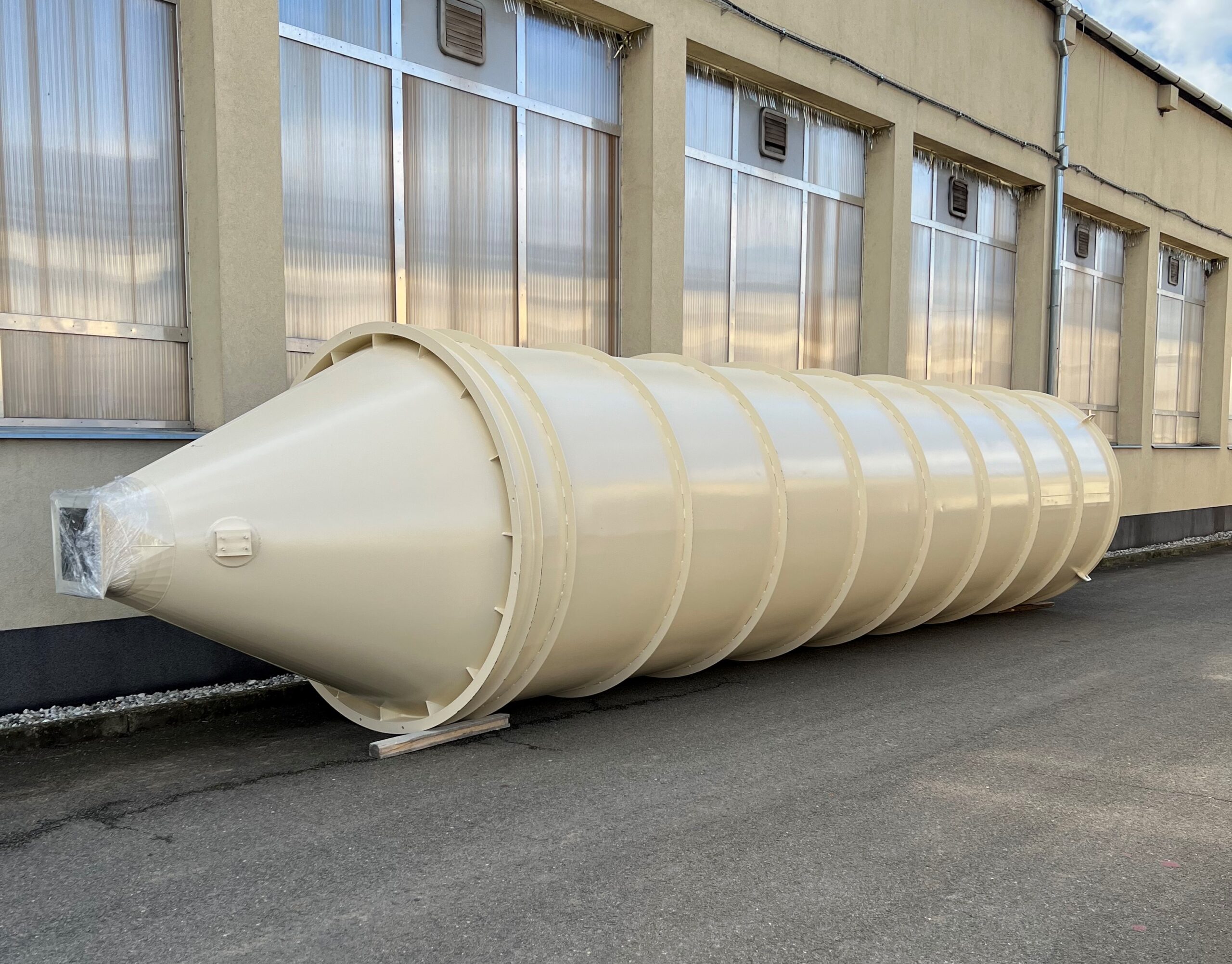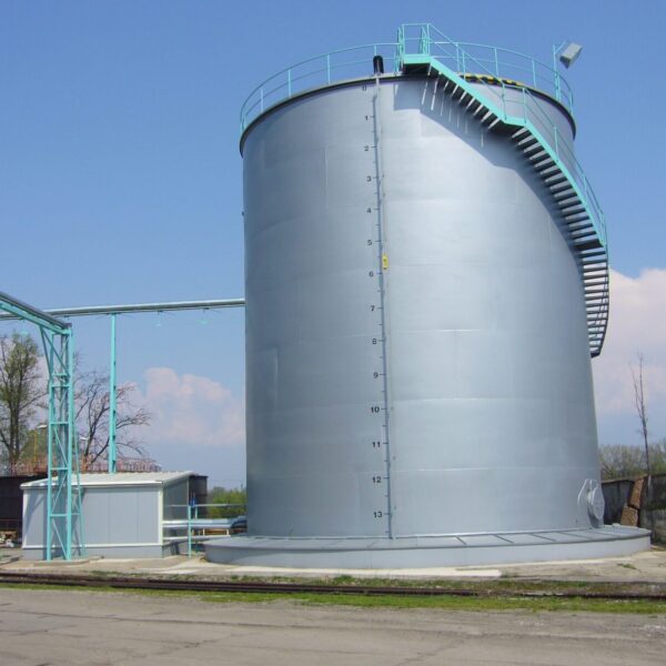 Součástí naší činnosti je také výroba a rekonstrukce zásobních nádrží, které často vznikají v rámci plánovaných odstávek provozů. Nejčastěji se jedná o beztlaké válcové nádoby s kuželovým dnem, určené pro skladování kapalin, sypkých směsí a dalších médií.